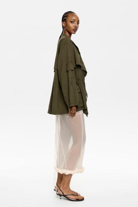 CAZADORA CRUZADA FLUIDA CAQUI OSCURO...